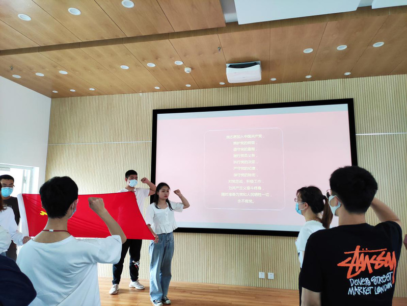 最后,在王春燕书记的带领下,学生支部党员教师和毕业生党员在鲜艳的党旗下重温了入党誓言。