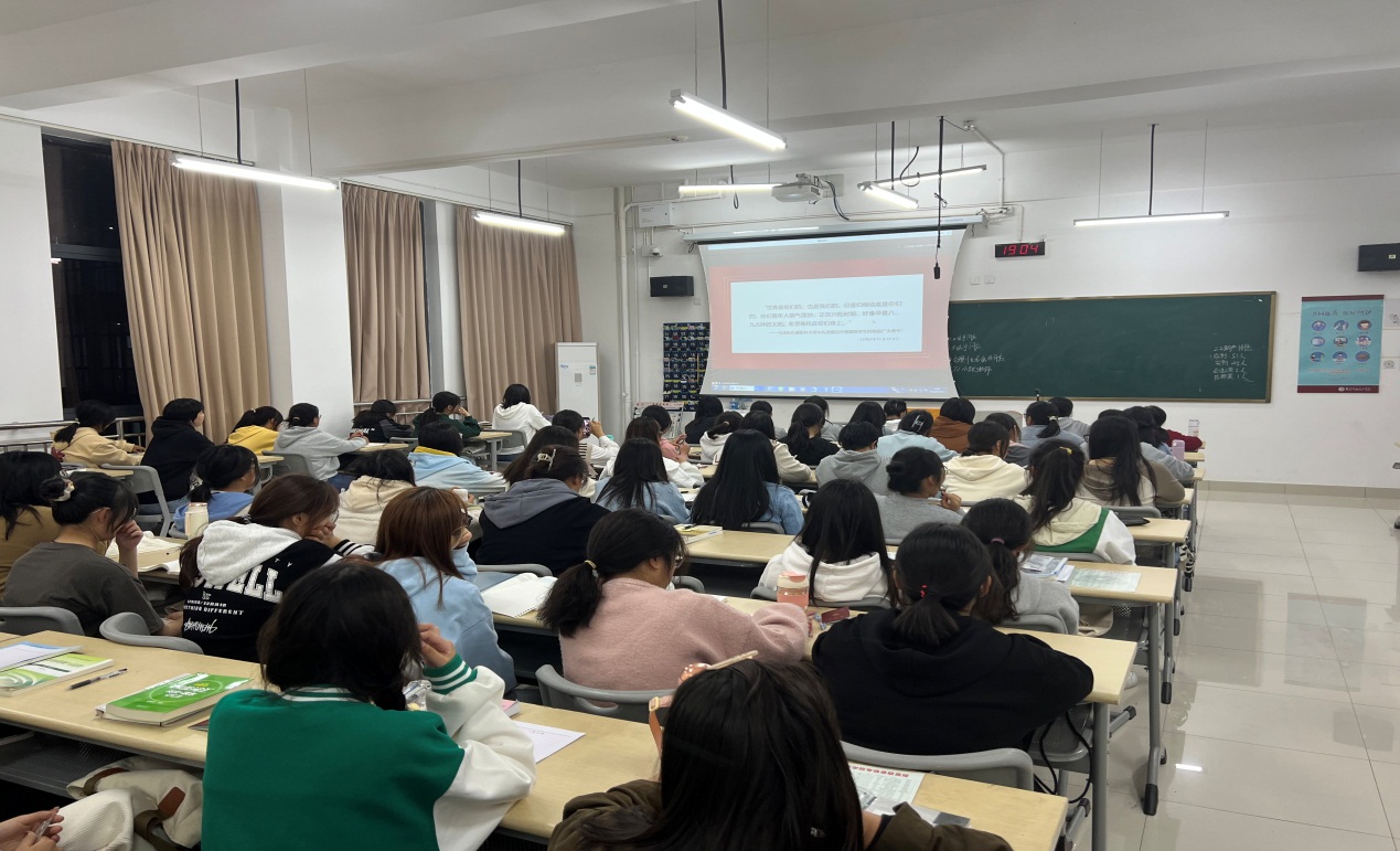 10月11日晚,医学院在公教楼举行了“争做堪当民族复兴重任的时代新人”讲座。此次讲座邀请了马克思主义学院钟瑞琴教授主讲,医学院党总支副书记张丽主持本次活动,2022级全体新生和班主任、辅导员等800余人参加了讲座。