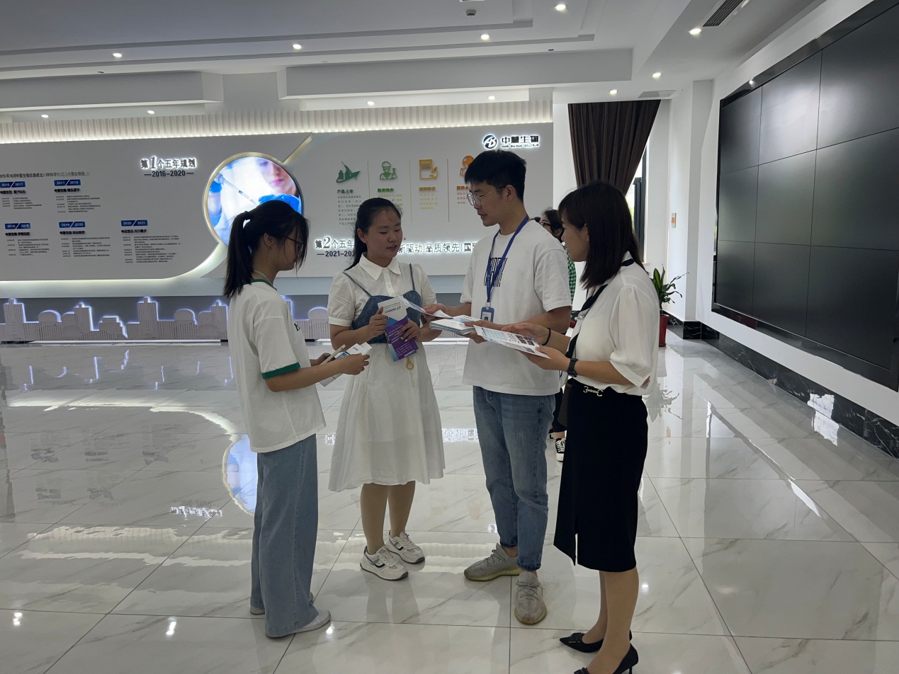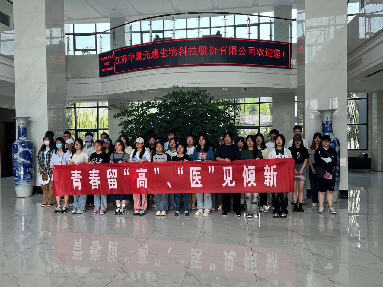 在江苏中慧元通生物科技股份有限公司,同学们参观了企业文化馆、车间生产线,聆听了公司创业历程、研究项目、发展前景等相关介绍,对药学专业的留泰就业前景有了更加深入的体悟。