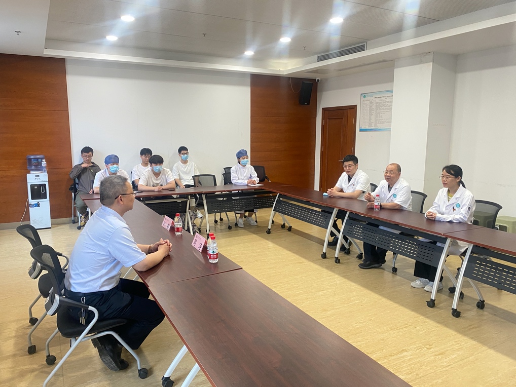 7月21日,医学院周涛院长、口腔系宋毅副主任到徐州市口腔医院进行实习巡视。在徐州市口腔医院主院区六号楼五楼会议室召开了实习巡视座谈会,徐州市口腔医院刘宗响副院长、医务科胡光宇科长、科教科陈清老师、冯静威等6名实习生参加了座谈会。