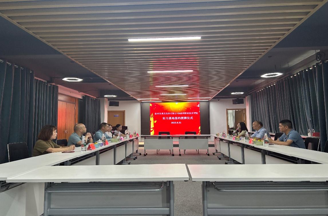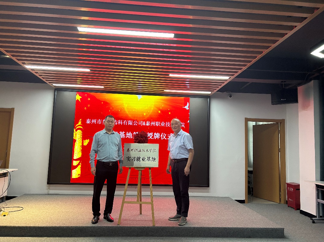 授牌仪式在颜见炳总经理、刘兴勇副院长共同揭牌“实习就业基地”牌匾中圆满落幕,开启了学院与泰州市奥美齿科有限公司合作的新篇章。