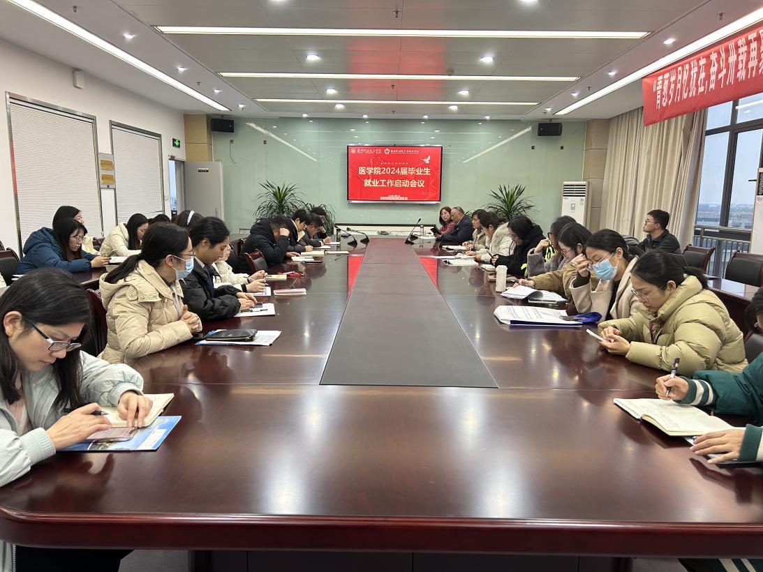 2023年12月11日下午,医学院在会议室801召开2024届毕业生就业工作启动会,学院全体领导班子、各专业负责人、办公室主任、全体毕业班班主任和辅导员参加会议,会议由学院党委书记张玉玲主持。