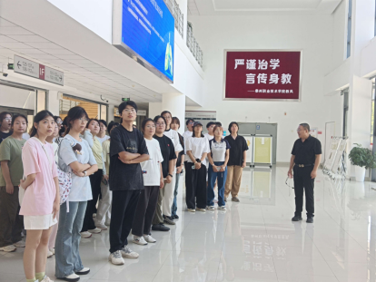 活动中,徐老师以校训石作为新生班级建设起锚点,详细讲解校训的出处和内涵,强调“厚德”的育人涵养和“尚技”的育才追求,激励同学们“自强不息”,不畏困难,奋发向上,并结合中华优秀传统文化经典,进一步阐述“大学之道”。在“乐学楼”前,徐老师介绍了泰州学派代表人物王艮的“乐学”思想,鼓励大家在求知过程中体会快乐、以乐促学。在公教楼大厅,徐老师又围绕“学风”,为新生阐释学风建设要求,坚持勤学和善思并举,理论和实践结合,并希望同学们从此刻起,就要树立志向,思考生涯规划,为成为对社会有用的新时代高素质技术技能型人才而努力奋斗。