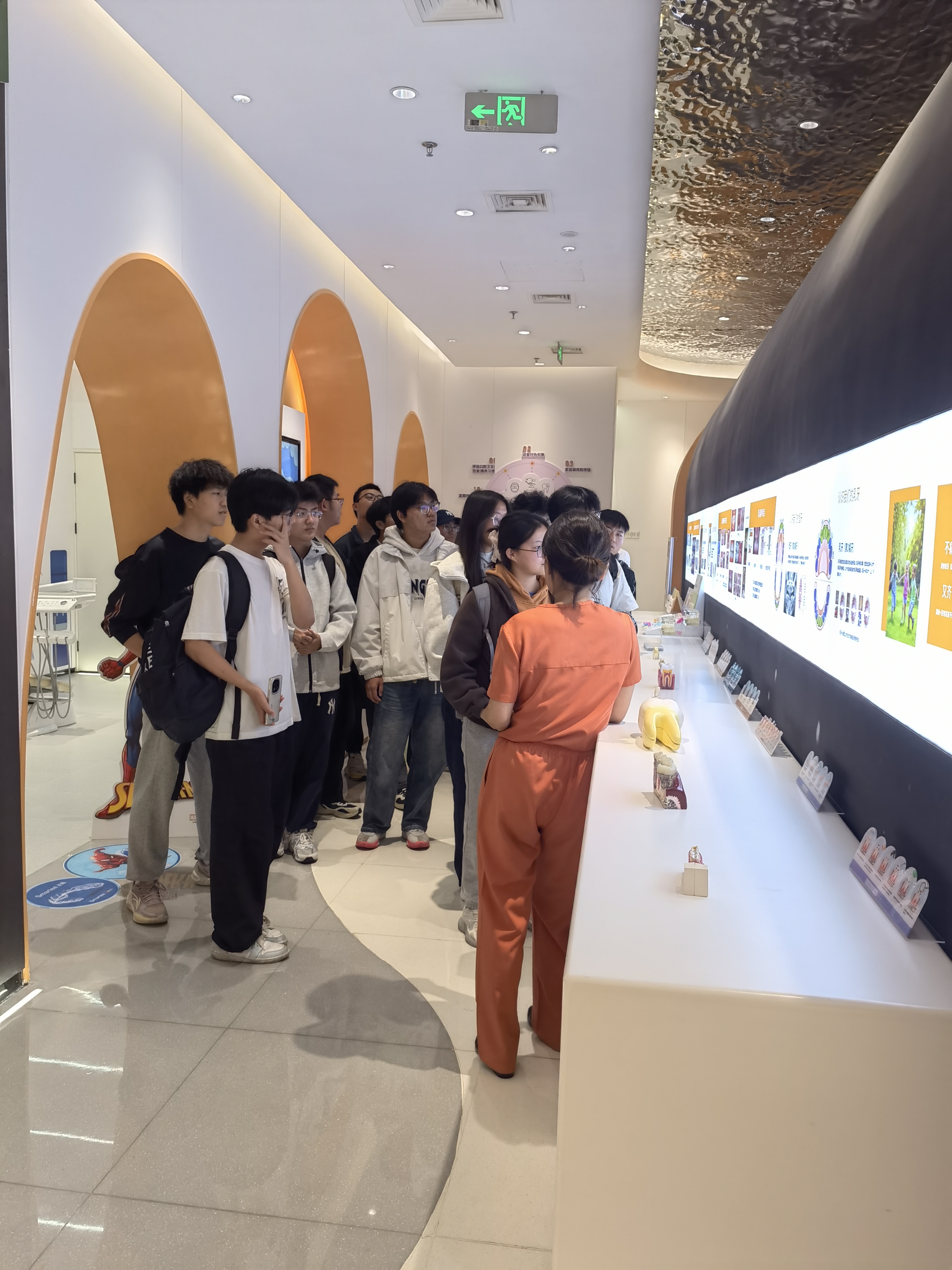 本次活动旨在打破课堂界限,让学生零距离接触未来职业环境,深入了解口腔医疗行业的前沿技术、管理理念与临床服务流程。在门诊部工作人员的引导下,同学们依次参观了各功能区域,从科普知识讲解到临床见习;从明亮整洁的接待前台,到配备先进数字化设备的口腔综合治疗室;从严格执行无菌管理的消毒中心,到拥有CBCT、口内扫描仪等尖端设备的AI数字化影像中心,大家认真观摩、仔细聆听,对现代化口腔诊所的规范运营、人性化服务细节以及数字化技术在诊疗中的广泛应用形成了直观而深刻的理解。